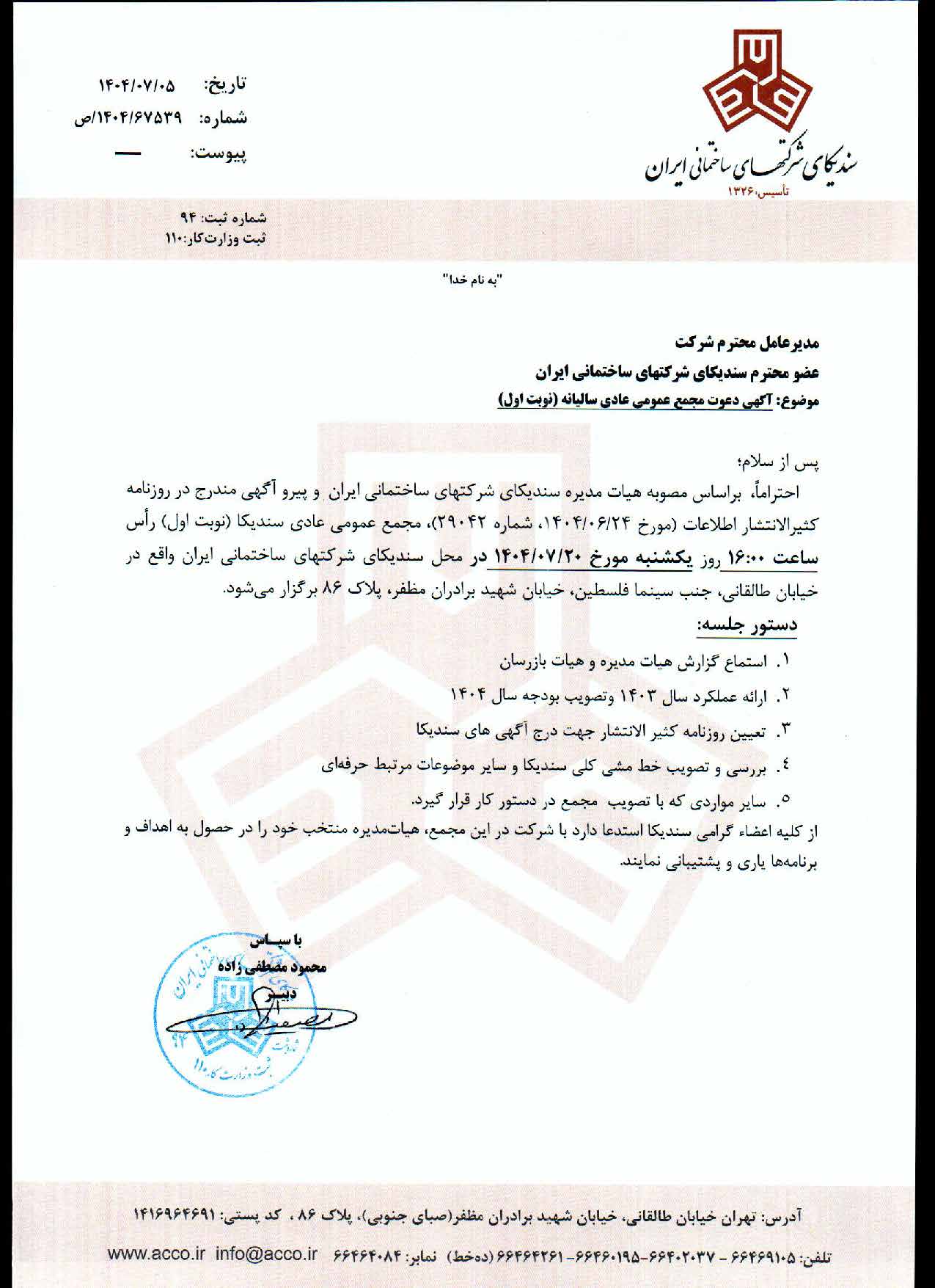 آگهی دعوت مجمع عمومی عادی سالیانه (نوبت اول)