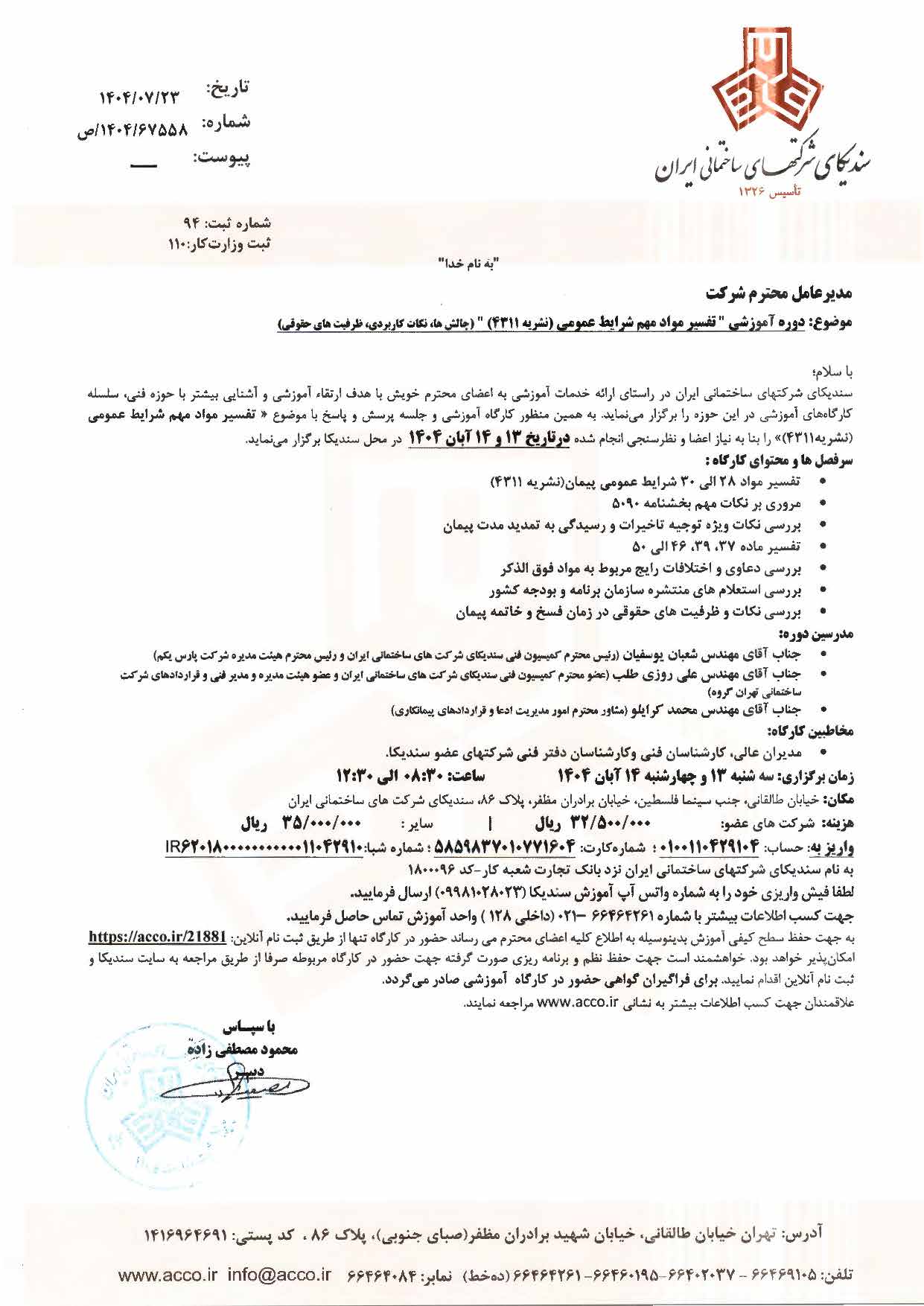 بخشنامه دوره آموزشی تفسیر مواد مهم شرایط عمومی(نشریه ۴۳۱۱)_Page_1