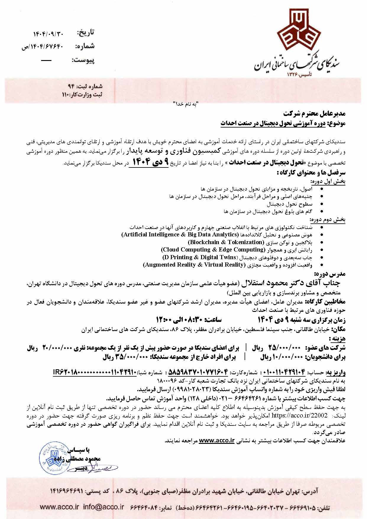 موضوع: دوره آموزشی تحول دیجیتال در صنعت احداث