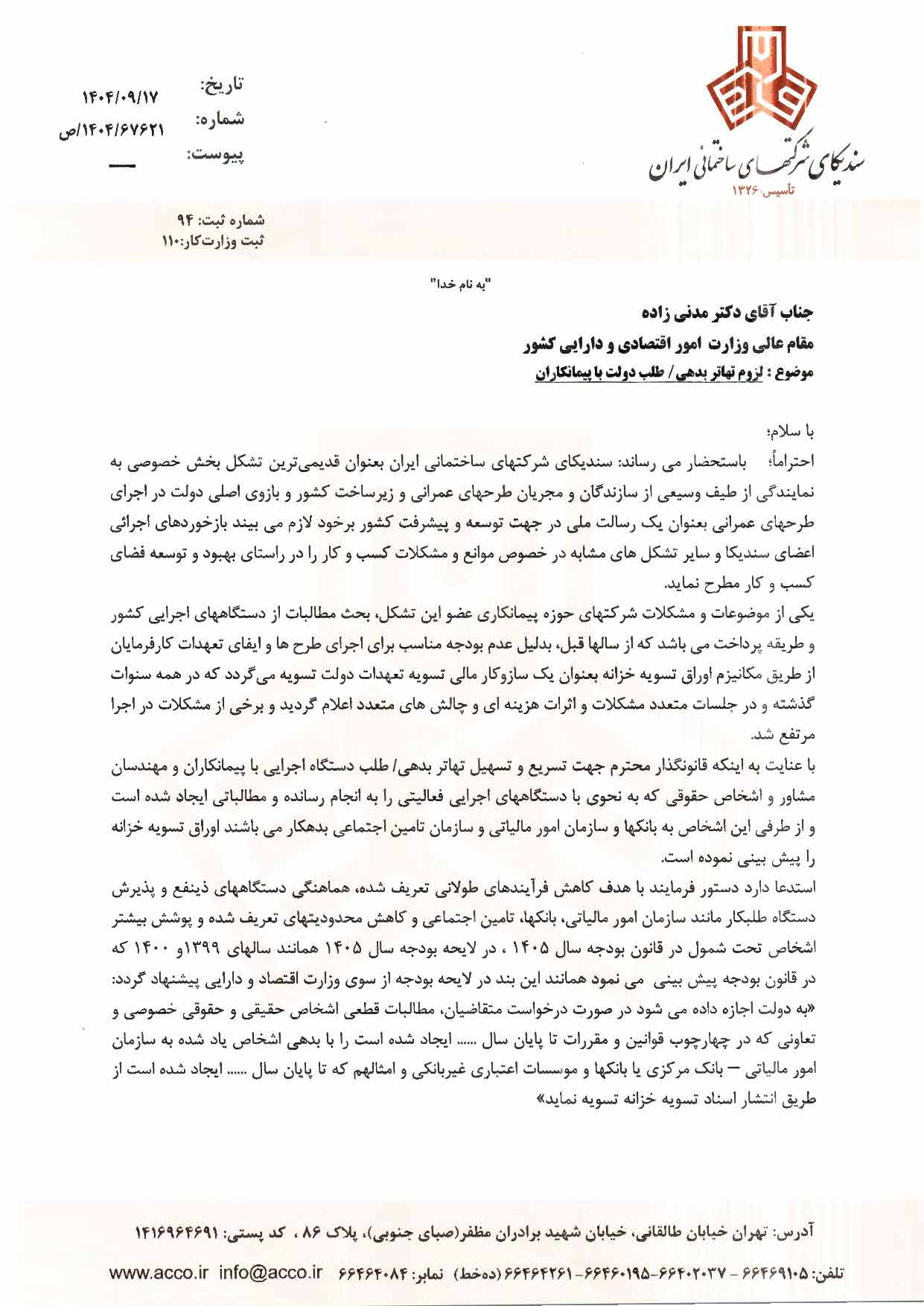 لزوم تهاتر بدهی/ طلب دولت با پیمانکاران