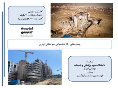 ۶-تکمیل عملیات ساختمانی و تاسیسات مکانیکی و برقی بیمارستان ۱۵۰ تختخوابی سوختگی تهران (قرارداد سوم)