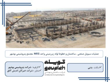 ۲- اجرای عملیات سیویل صنعتی، ساختمان و خطوط لوله زیرزمینی واحد MEG مجتمع پتروشیمی بوشهر