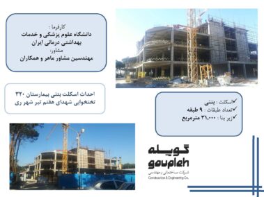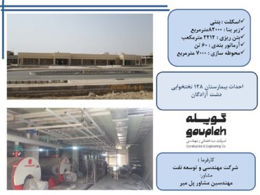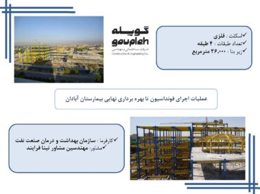 ۹- اجرای اسکلت بیمارستان۱۵۰ تختخوابی آبادان