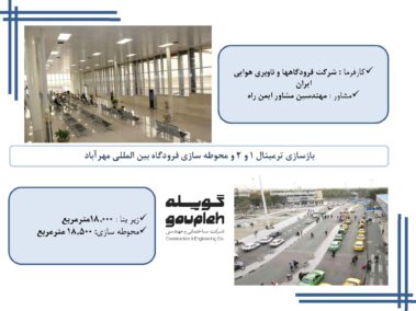 ۱- عملیات بازسازی ترمینال ۱ و ۲ و محوطه سازی فرودگاه بین المللی مهرآباد
