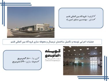 ۳- عملیات اجرایی توسعه و تکمیل ساختمان ترمینال و محوطه سازی فرودگاه بین المللی قشم