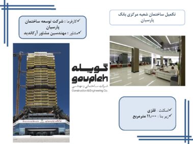 ۸- تکمیل ساختمان شعبه مرکزی بانک پارسیان