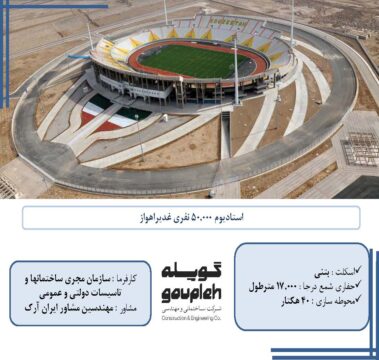 ۵- دریافت تقدیر نامه از سازمان مجری ساختمان ها و تاسیسات دولتی و عمومی در خصوص پروژه استادیوم ۵۰۰۰۰ نفری غدیر اهواز