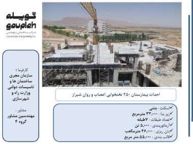 ۶- اسکلت بتنی (سازه) بیمارستان ۲۵۰ تختخوابی اعصاب و روان شیراز