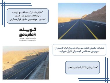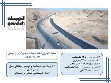 ۲- عملیات تکمیلی قطعه سوم باند دوم بزرگراه گچساران – بهبهان حد فاصل گچساران تا پل خیرآباد