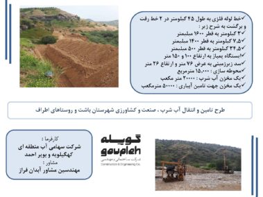 ۳- طرح تامین و انتقال آب شرب ، صنعت و کشاورزی شهرستان باشت و روستاهای اطراف