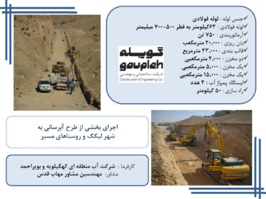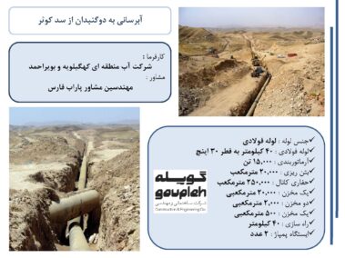 ۸- طرح آب رسانی به شهر دوگنبدان از سد کوثر شامل احداث خط انتقال ، تلمبه خانه ها ، و مخازن