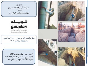 ۹-اجرای پروژه ۱۲ کیلومتر خط لوله آب رسانی به مخزن آب ۴۰،۰۰۰ مترمکعبی شیراز