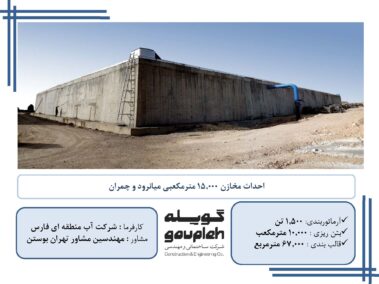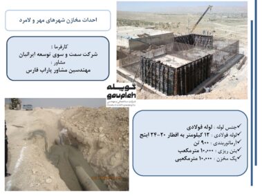 ۱۰- مخازن بتنی ۱۵،۰۰۰ مترمکعبی میانرود شیراز و خط انتقال آب بین مخازن