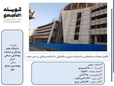 ۴-تکمیل عملیات ساختمانی و تاسیسات برقی و مکانیکی دانشکده پزشکی پردیس همت