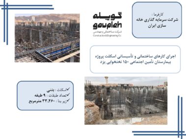 ۱- اجرای کارهای ساختمانی و تأسیساتی اسکلت پروژه بیمارستان تأمین اجتماعی ۱۵۰ تختخوابی یزد