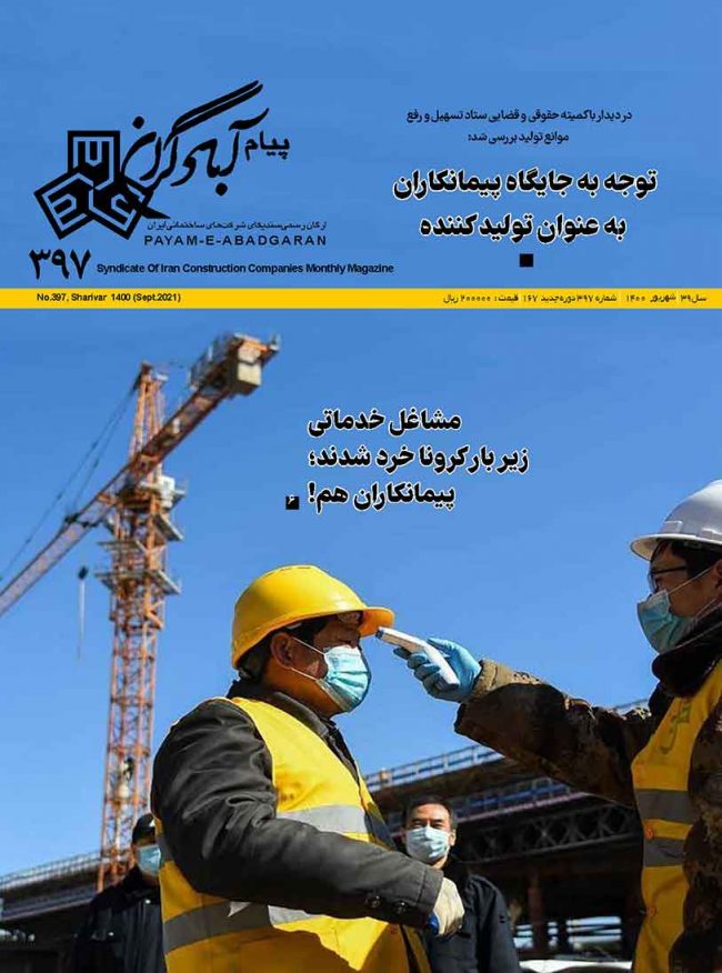 ماهنامه پیام آبادگران شماره ۳۹۷، ارگان رسمی سندیکای شرکت های ساختمانی ایران می باشد. شماره ۳۹۷ ویژه شهریور ۱۴۰۰ منتشر گردید.