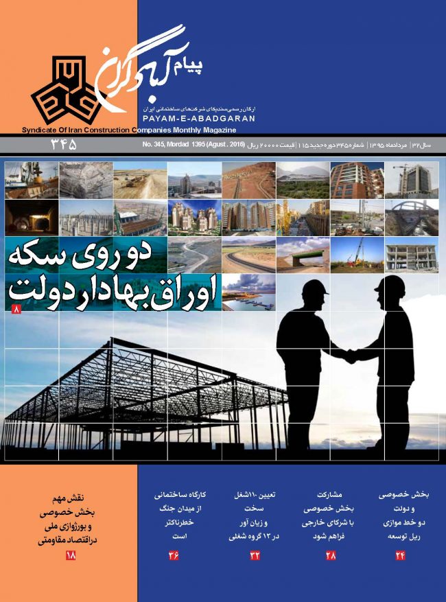 ماهنامه پیام آبادگران شماره ۳۴۵، ارگان رسمی سندیکای شرکت های ساختمانی ایران می باشد. شماره ۳۴۵ ویژه مرداد ۱۳۹۵ منتشر گردید.