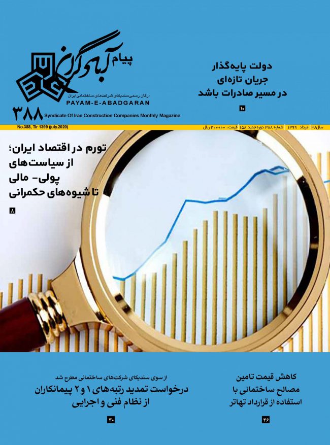 ماهنامه پیام آبادگران شماره ۳۸۸، ارگان رسمی سندیکای شرکت های ساختمانی ایران می باشد. شماره ۳۸۸ ویژه مرداد ۱۳۹۹ منتشر گردید.